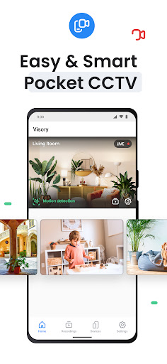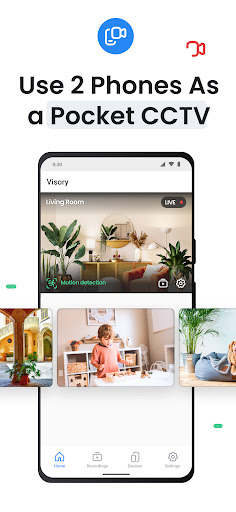 Visory là một ứng dụng camera IP không dây HD hoạt động như một camera CCTV gia đình khi kết nối với thiết bị di động. Sử dụng ứng dụng đám mây giám sát gia đình để theo dõi từ xa camera IP cho em bé và chó. Tận hưởng ứng dụng camera gia đình dành cho Android của chúng tôi với camera dành cho chó. Để sử dụng ứng dụng camera bảo mẫu Visory làm camera IP WiFi hoặc đồng hồ từ xa camera dành cho chó, bạn cần liên kết ít nhất hai thiết bị (điện thoại thông minh hoặc máy tính bảng) - một thiết bị để quay video và một thiết bị để xem.
