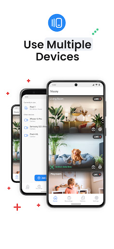 🔹 Ứng dụng camera bảo mẫu của chúng tôi tương thích với các thiết bị chạy Android hoặc iOS. Hơn nữa, với camera CCTV gia đình Visory kết nối trên thiết bị di động, bạn có thể dễ dàng liên kết iPhone và bất kỳ điện thoại thông minh nào có hệ điều hành Android. Cho dù bạn cần ứng dụng camera gia đình cho Android & iOS để giám sát kín đáo, ứng dụng camera IP không dây HD để phát trực tiếp hay đồng hồ từ xa camera, ứng dụng đám mây này đảm bảo chức năng mượt mà trên nhiều thiết bị.